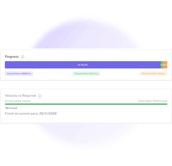 Get precise effort and hour forecasts based on real-time progress, velocity, and historical performance.