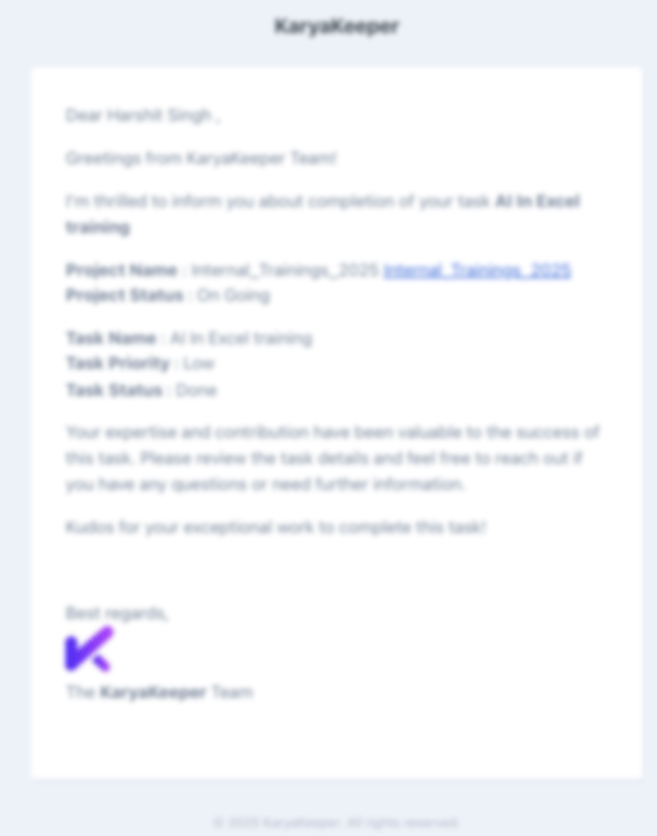 Karya Keeper sends intelligent alerts:- Deadline reminders