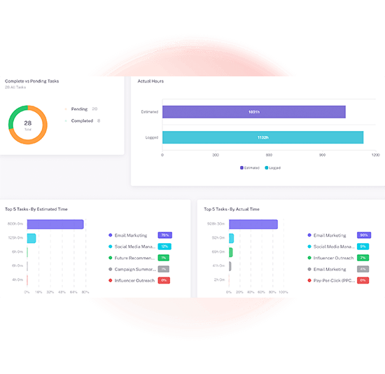 Balance workloads effortlessly by seeing how hours are estimated, logged, and distributed across teams and individuals. Ensure no one is overworked — or underutilized.