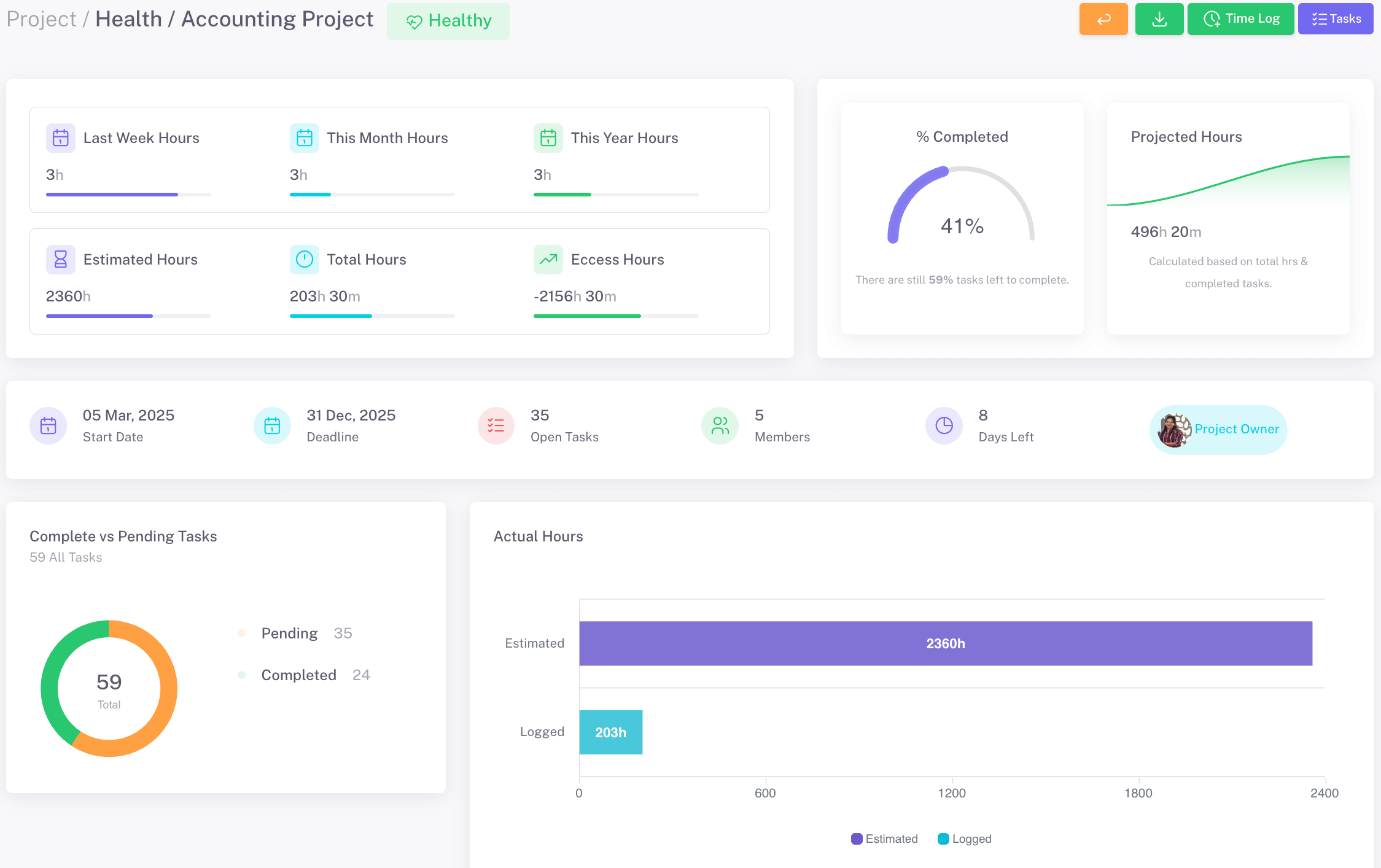• Comparison: Estimated vs. total hours comparison for accuracy.